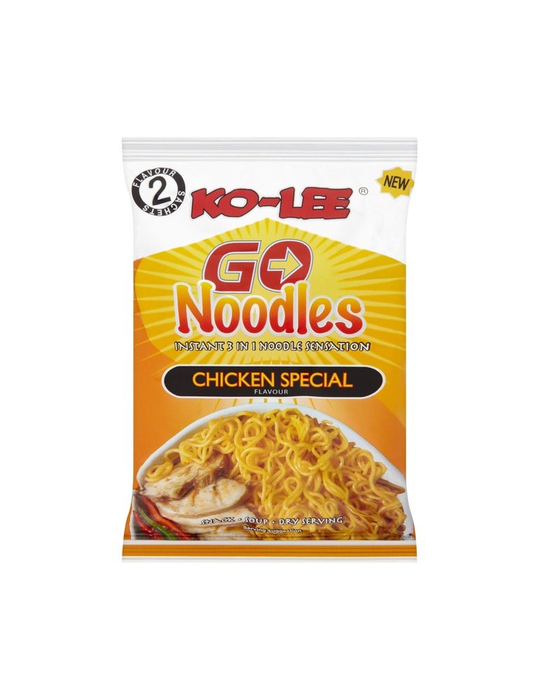 Ko-Lee Go Noodles are a newly designed instant noodle sensation as they can be eaten dry as a crunchy snack or cooked into a yummy noodle soup or a conventional noodle dish.